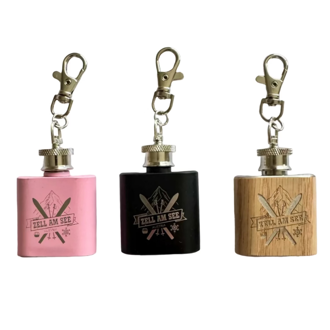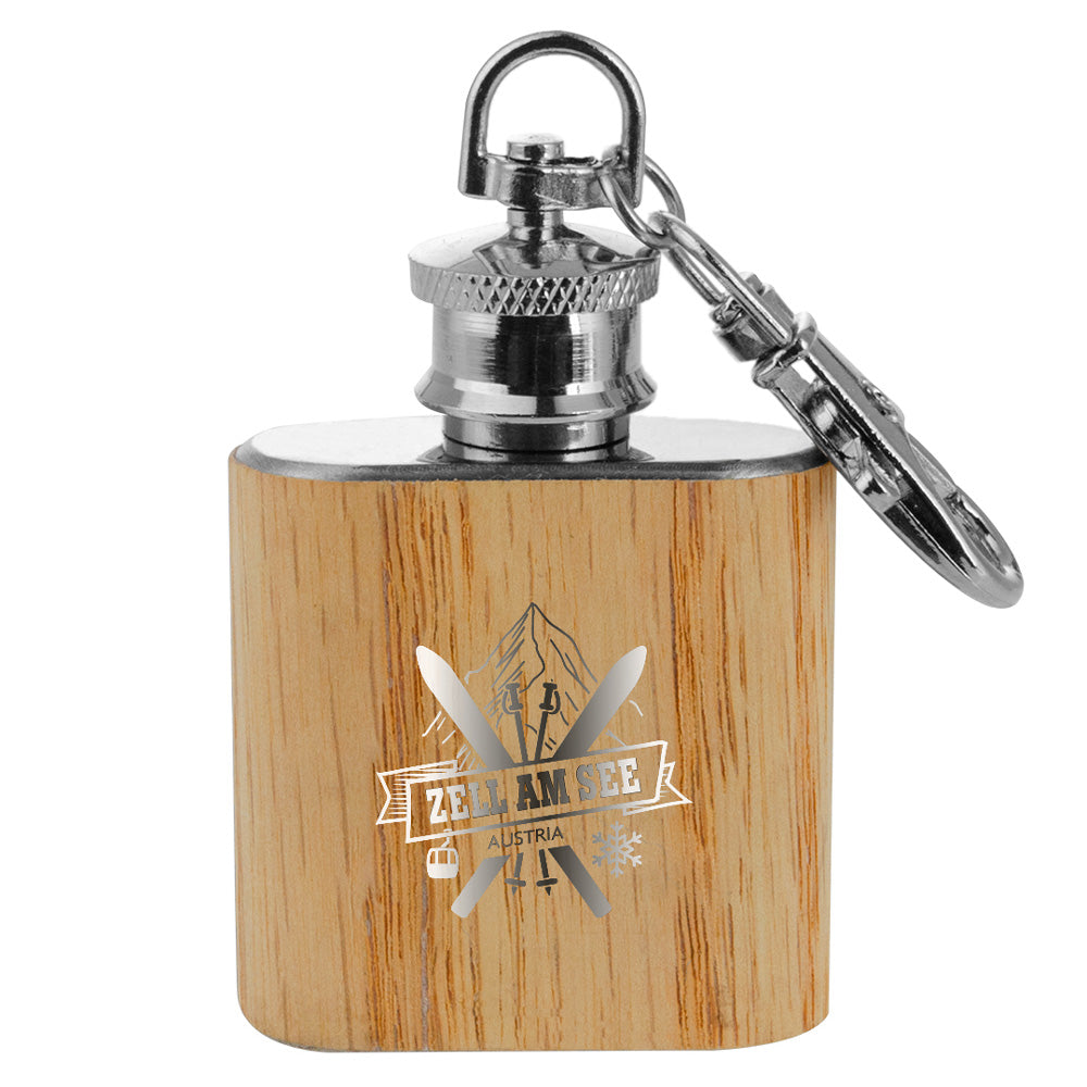 Edelstahl/Holz Schlüsselanhänger Flachmann klein 'Zell am See Ski'