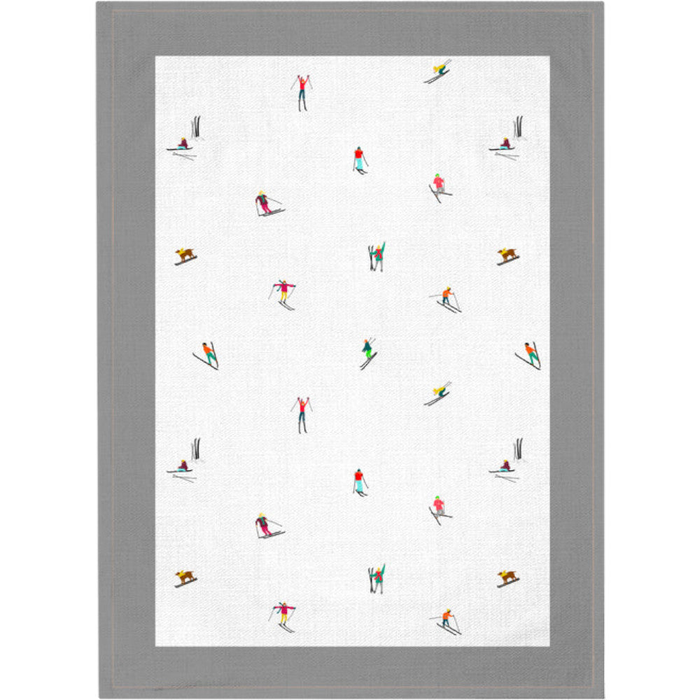 Hochwertiges Geschirrtuch aus 100% Baumwolle mit farbenfrohem Skimotiv. Robust, langlebig, bis 60°C waschbar und in Top-Qualität Made in EU – bringt Landhaus-Flair in Ihre Küche!