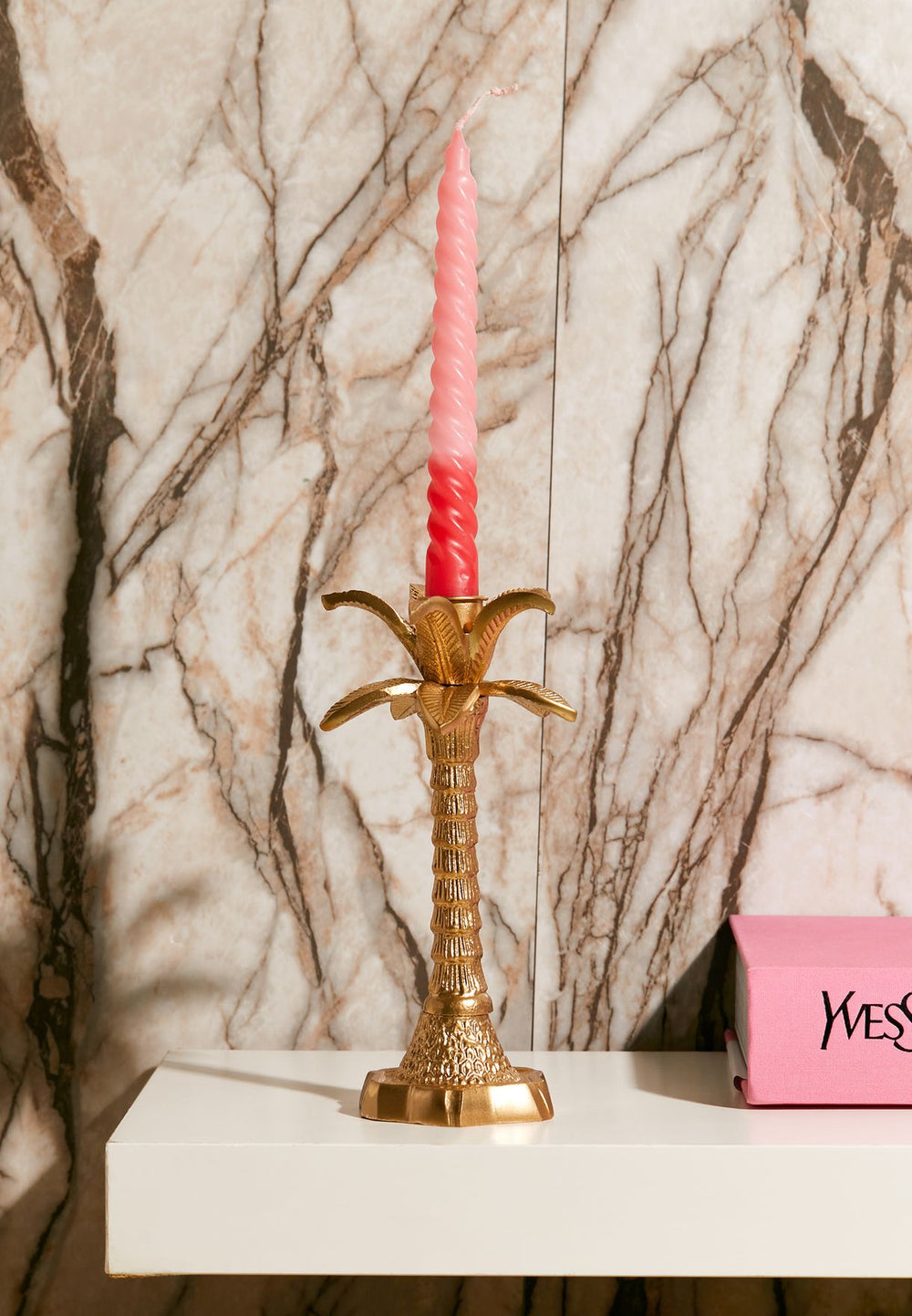 Der Kerzenhalter in Gold in Palmenform von Rice ist ein wahrer Blickfang für jeden Raum. Mit seinem eleganten und glänzenden Design verleiht er jedem Ambiente einen Hauch von Luxus und Stil. Dieser Kerzenhalter besteht aus hochwertigem Metall und besticht durch seine feine Verarbeitung und Detailgenauigkeit.