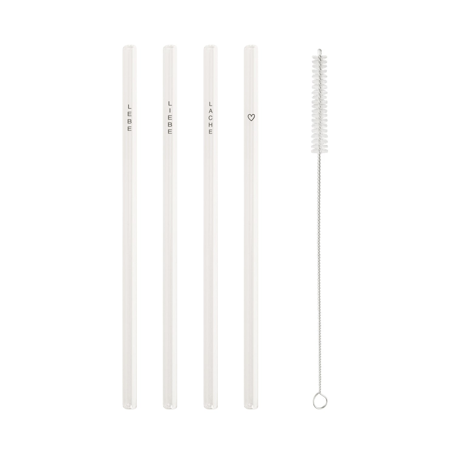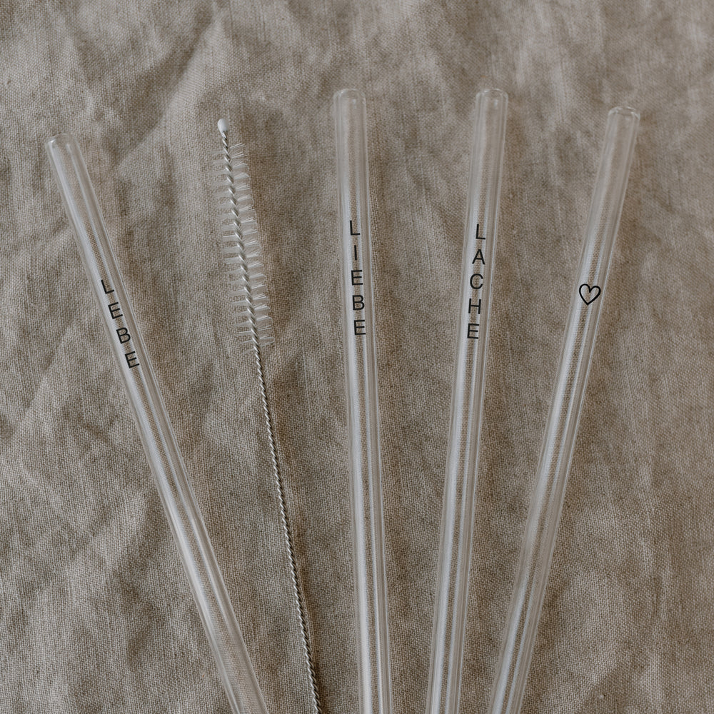 Strohhalme Lebe Liebe Lache 4er Set aus Glas