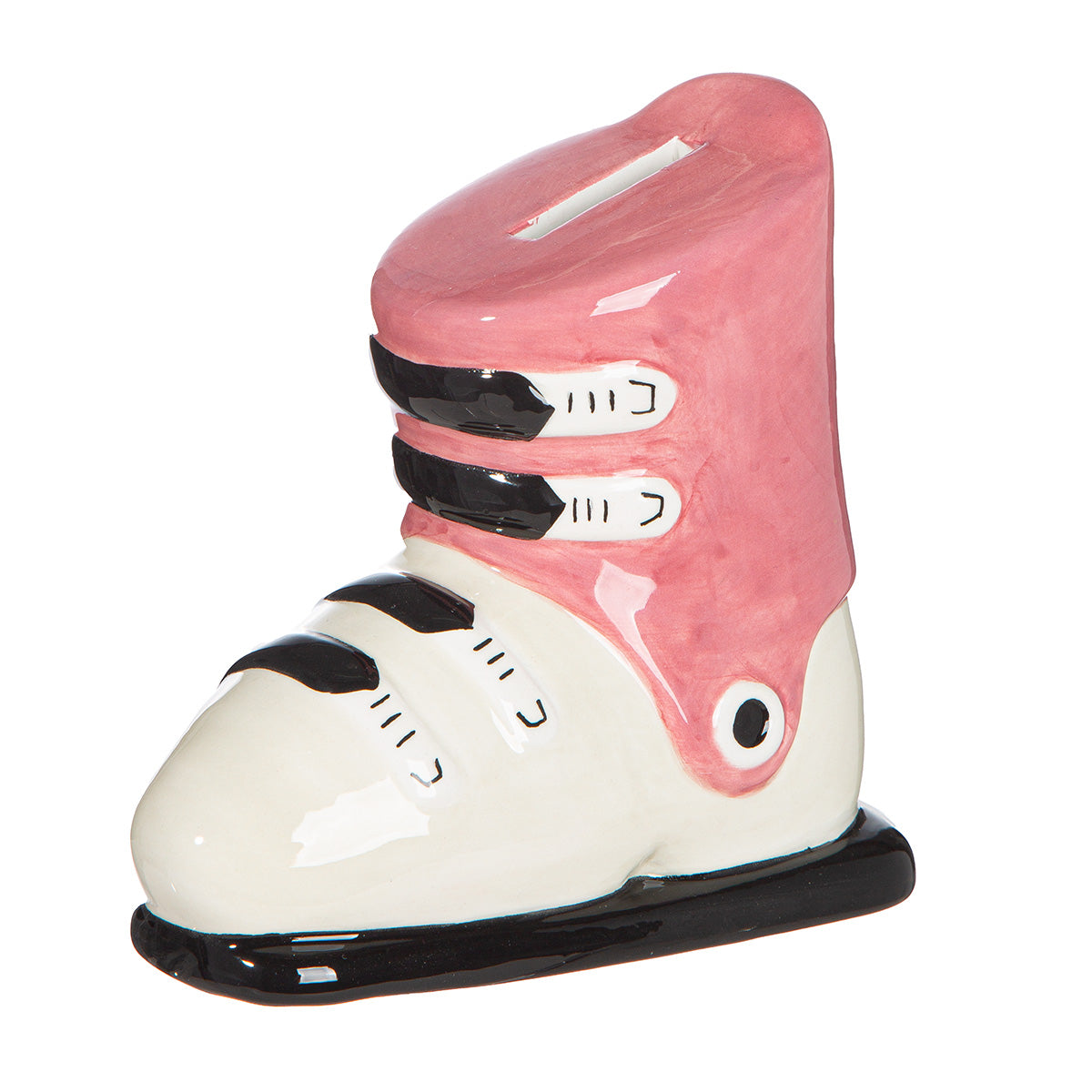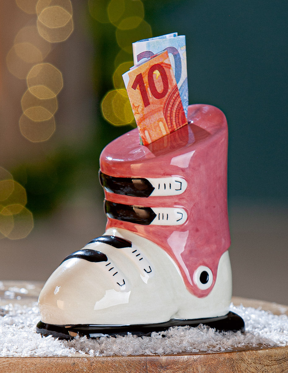 Sparen mit Stil – diese charmante Keramik-Spardose in Skischuh-Form bringt Wintersport-Flair in jedes Zimmer. Das liebevoll gestaltete Design macht sie zum perfekten Geschenk für Ski-Enthusiasten und Schneeliebhaber. Ideal zum Sammeln von Kleingeld oder als dekoratives Accessoire, das Ihre Leidenschaft für die Berge widerspiegelt.