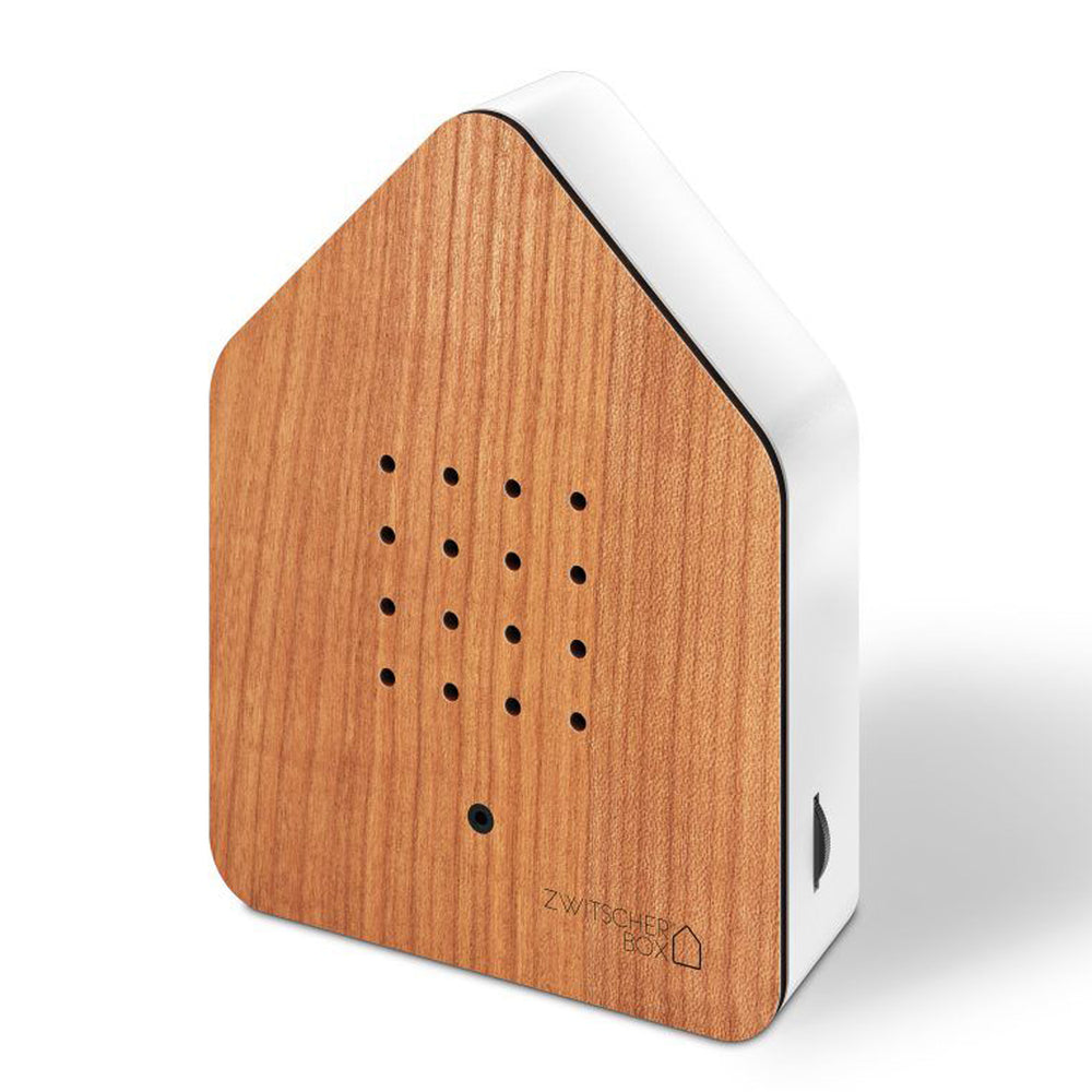 Platziere die Zwitscherbox im Eingang, Bad, WC, Küche, Flur, Balkon oder Büro. Mit ihrem sparsamen Batteriebetrieb bist du unabhängig vom Stromnetz. Lasse dich von dieser Box aus Kirschholz auf eine sonnige Waldlichtung entführen und genieße ihre Exklusivität.