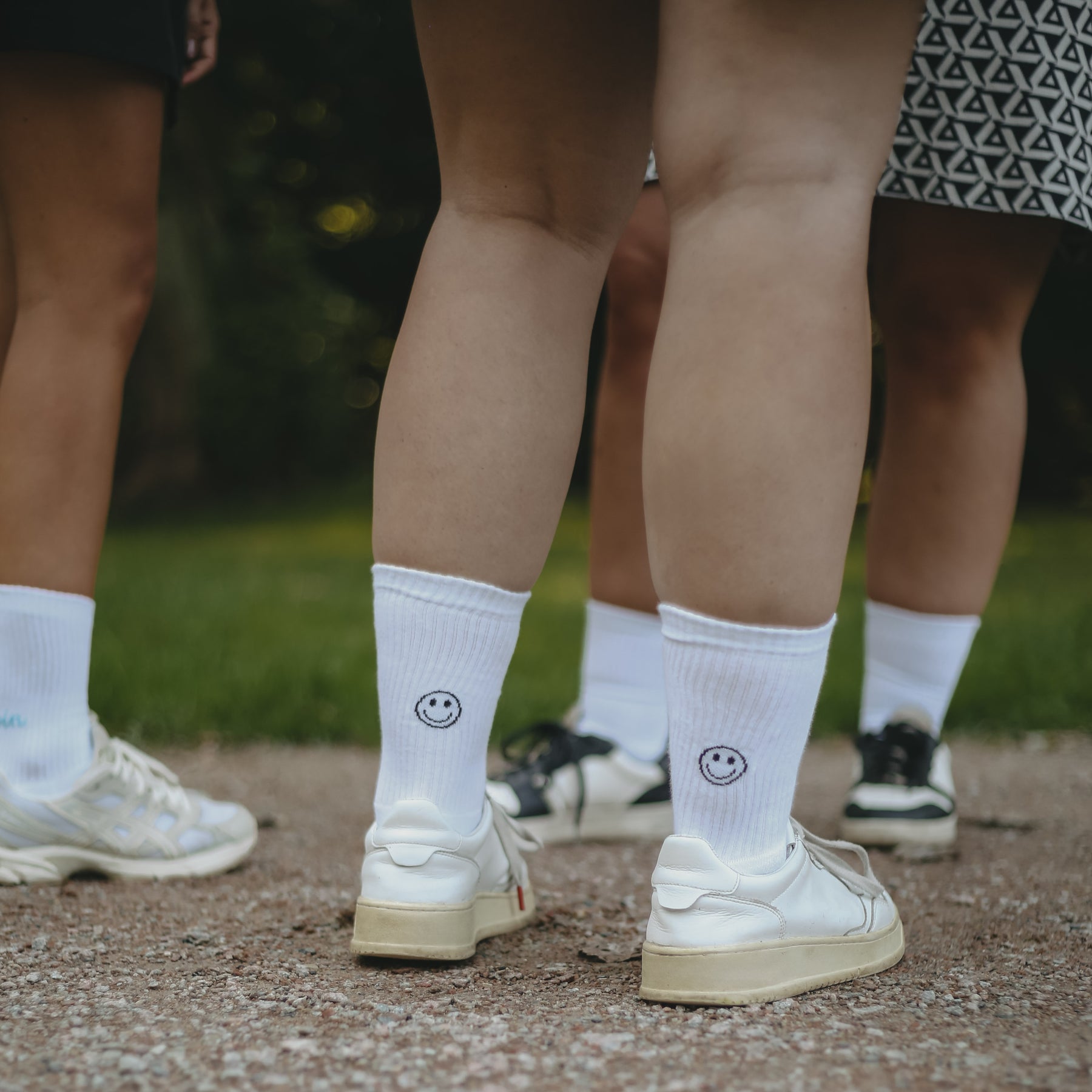 Eulenschnitt Smiley-Socken zaubern jedem ein Lächeln ins Gesicht! Der Smiley auf der Ferse blitzt charmant über deinen Sneakern hervor und bringt Spaß in jedes Outfit. Mit verstärkter Ferse & Spitze sowie perfekter Höhe bieten sie bequemen Tragekomfort den ganzen Tag.