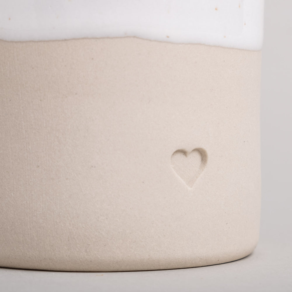 Unser neu gestaltetes Kännchen Herz erstrahlt in einer frischen, formschönen Silhouette und ist mit einem herzförmigen Detail versehen, es integriert sich perfekt in unsere Steingut-Familie. Mit viel Leidenschaft entworfen, wobei wir besondere Sorgfalt auf Form, Material, Glasur und Design gelegt haben. Die liebevolle Fertigung übernimmt eine kleine, familiengeführte Töpferei in Portugal, die jedes Kännchen per Hand herstellt und ihm eine ganz eigene Note verleiht. Für alle, die die Einzigartigkeit von handgearbeitetem Ton und individueller Glasur schätzen, ist dieses Kännchen ein echter Schatz.