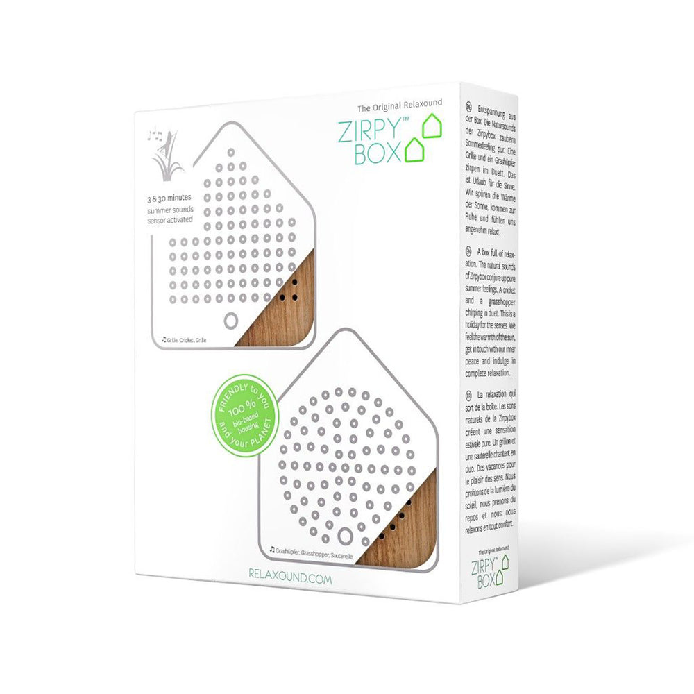 The elegant design front of our Zirpybox is sustainably manufactured in the Thuringian wood factory. It is made from 100% leftover wood from local forests, which conserves resources and is based on upcycling . This combination of sustainability and elegance is a perfect success. The Zirpybox's battery provides enough energy for many summer trips. The sounds of the Zirpybox transport you to a relaxed summer atmosphere. You listen to its chirping, feel the sun's rays and the shimmering air. Immerse yourself in a soothing calm and experience the relaxed mood of a perfect summer day as often as you like.