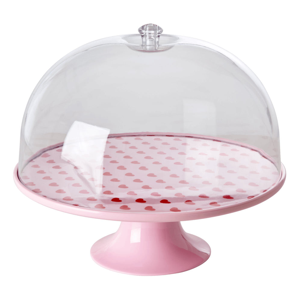 Pink melamine cake plate with red hearts. So that your cakes are presented appropriately and beautifully, regardless of whether you bought them in the store or made them yourself with love.